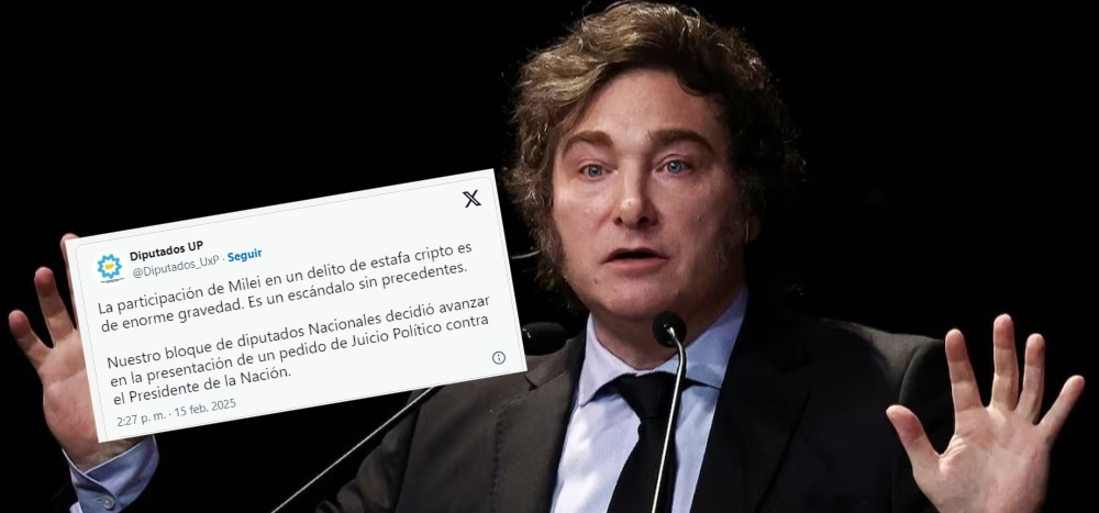 El escándalo por la promoción de una criptomoneda por parte del mandatario Javier Milei sigue escalando, ahora se conoció que el bloque de Unión por la Patria (UxP) de la Cámara de Diputados presentará un pedido de Juicio Político contra el presidente.