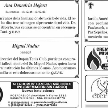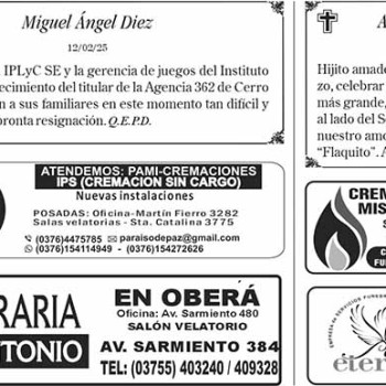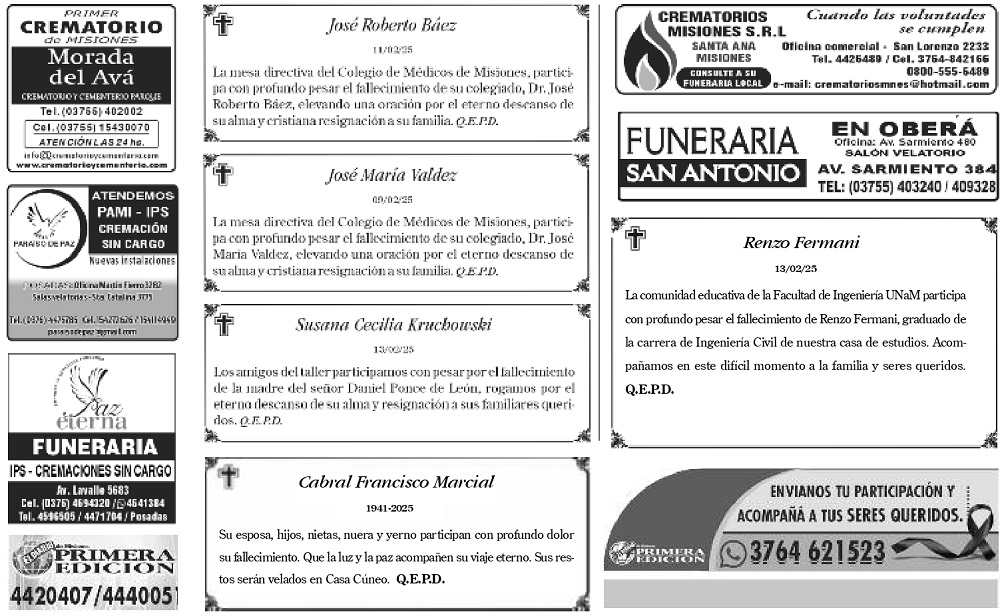 • Fúnebres del Jueves 13 de Febrero de 2025