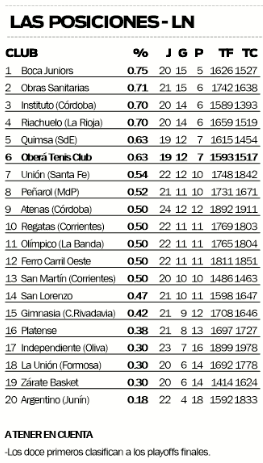 Lo pasado, pisado. Luego de la derrota del último martes ante Ferro (93-89) que lo privó de entrar a la Copa Súper 20, el Oberá Tenis Club buscará esta noche dar vuelta la página cuando reciba a Quimsa, en una nueva jornada de la Liga Nacional de básquetbol.