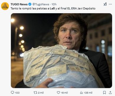 Otros internautas aprovecharon la negligencia presidencial y comenzaron a hacer memes con el término “Javi Deposito”, replicando el mismo tono burlón que Milei utiliza para referirse a la cantante Lali Expósito.