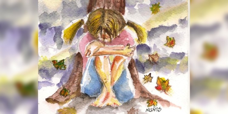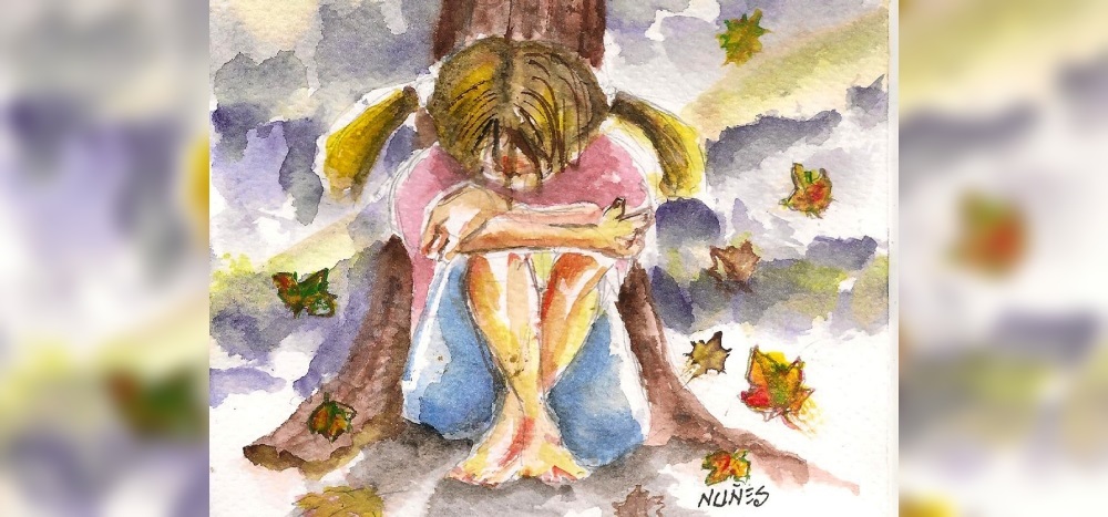 Caminando por el parque vi a una niña sentada debajo de un árbol; estaba sola. De un momento a otro el sol desapareció, todo se oscureció, solo podía verla con la cabeza agachada y tímidamente acurrucada.
