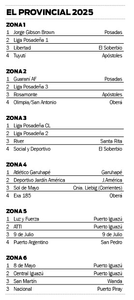 En tanto que la Zona 3 la disputarán Liga Posadeña CL, Liga Posadeña 2, River de Santa Rita y Deportivo El Soberbio.
