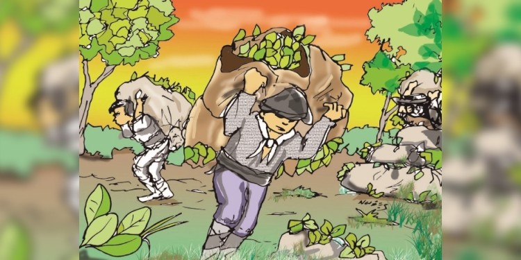 En el yerbal cada tanto surgía macho y bravío un sapucay o risotadas de chanzas entre ellos, luego en improvisadas mesas comían al mediodía y después de un breve descanso tras el impulso del capataz vuelta a empezar.