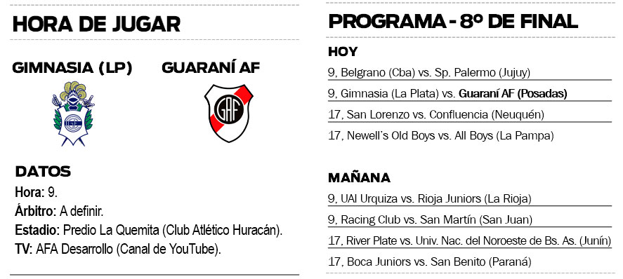La serie es a partido único, por lo que el vencedor del match avanzará directamente a los cuartos de final, donde enfrentará al ganador de la llave que enfrenta a Newell’s Old Boys de Rosario y All Boys de Santa Rosa, La Pampa, también hoy pero desde las 17 y en el predio de la Asociación del Fútbol Argentino (AFA) en Ezeiza.