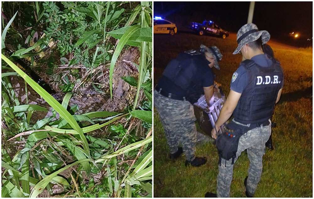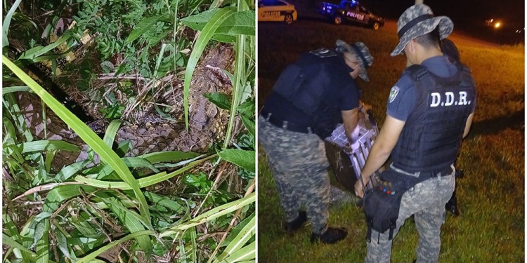 Asistieron al lugar -ubicado en el kilómetro 18 de la ruta provincial 17- agentes especialistas en rescate de fauna, del equipo de Prevención de Delitos Rurales de la Unidad Regional III de Eldorado. Con un procedimiento particular lograron atrapar al animal (yacaré overo / caiman latirostris), y lo resguardaron.