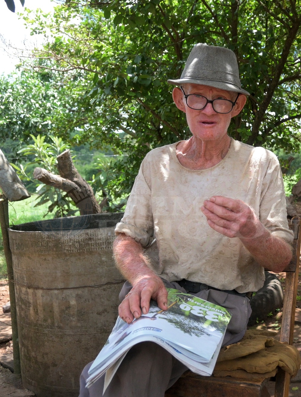 “Fui a la escuela, pero, a decir verdad, empecé a trabajar duro a los 12 años. Por la mañana iba a clases y por la tarde me pasaba arando la tierra con una yunta de bueyes. También ayudé a tumbar el monte y a levantar alguna casa. Y así seguimos hasta la actualidad. Con 86 sigo yendo a la chacra porque a mí me gusta el trabajo. Es que uno ya nació así y no quiere dejar. Me levanto a las 5 y al clarear, como todas las mañanas, vienen a verme los hijos, charlamos hasta que sale el sol y cada uno va a su trabajo. En estos días estaba limpiando los potreros, macheteando con la foiza. Vuelvo a casa alrededor de las 10, porque hace mucho calor. A la tarde regreso, después de una siesta, aunque si es mucho el calor no se puede descansar, me quedo en la sombrita”.