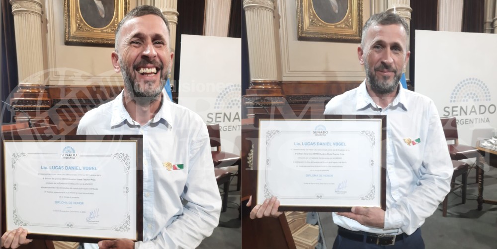 Lucas Vogel, el docente misionero reconocido entre los mejores del mundo, fue homenajeado en el Senado