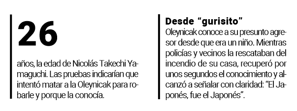Durante las últimas horas se resaltó que Oleynicak conocería desde “que era un gurisito, un niño” a Yamaguchi, destacó otra fuente de la investigación entre las evidencias y datos que fueron recogidos hasta el momento que apuntalan la sospecha. “El Japonés, fue el Japonés”, alcanzó a gritar la víctima mientras la asistían vecinos y policías.