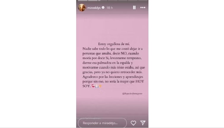 Tras la divulgación oficial de la noticia sobre el divorcio de la pareja, Mireddys compartió en su cuenta de Instagram un mensaje que parece estar dirigido a la situación que enfrenta: