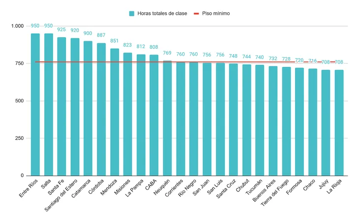 Buenos Aires, Ciudad de Buenos Aires, Chaco, Chubut, Formosa, Jujuy, La Rioja, Mendoza, Santa Cruz, Tierra del Fuego y Tucumán) no cumplen con el piso de 760 horas de clase en la jornada simple, incluso si se toman los feriados, el receso invernal y las jornadas institucionales