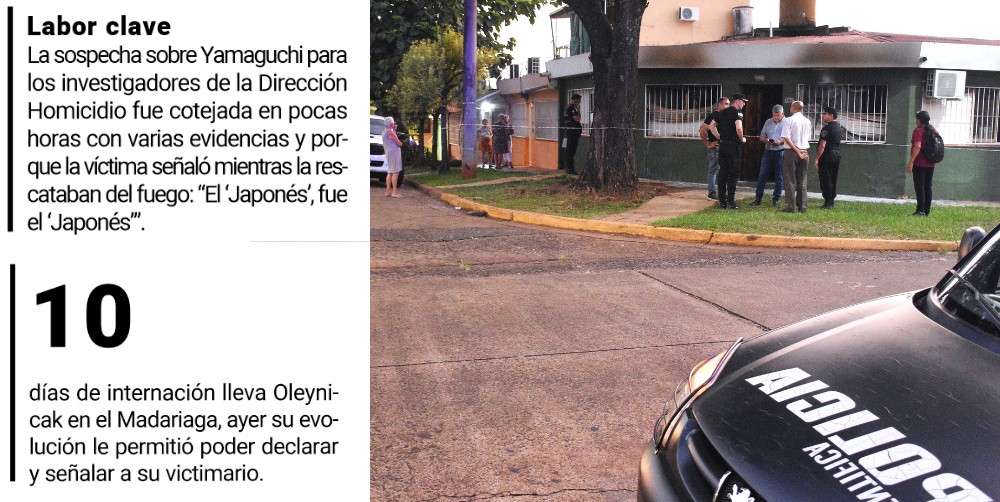 El “intento de robo y de homicidio criminis causa”, se mantiene como imputación para Yamaguchi. Ahora más complicado porque la víctima evolucionó en diez días y ayer por la mañana, apenas fue retirada del sector de terapia intensiva dio su testimonio clave para el esclarecimiento.
