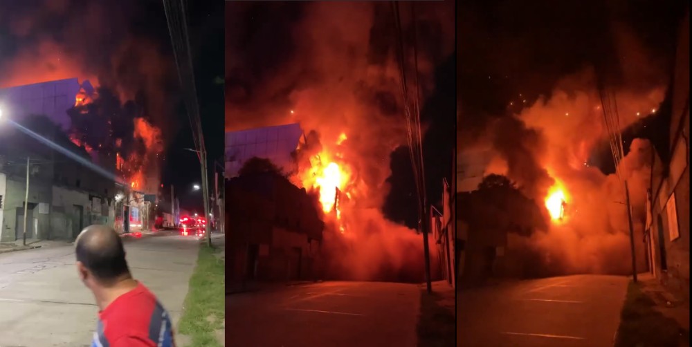 Las enormes llamaradas eran visibles desde varios kilómetros de distancia y avanzaron peligrosamente cerca de una de las torres del complejo habitacional. Los vecinos, que en principio filmaban el impactante siniestro, huyeron despavoridos al derrumbarse el galpón.