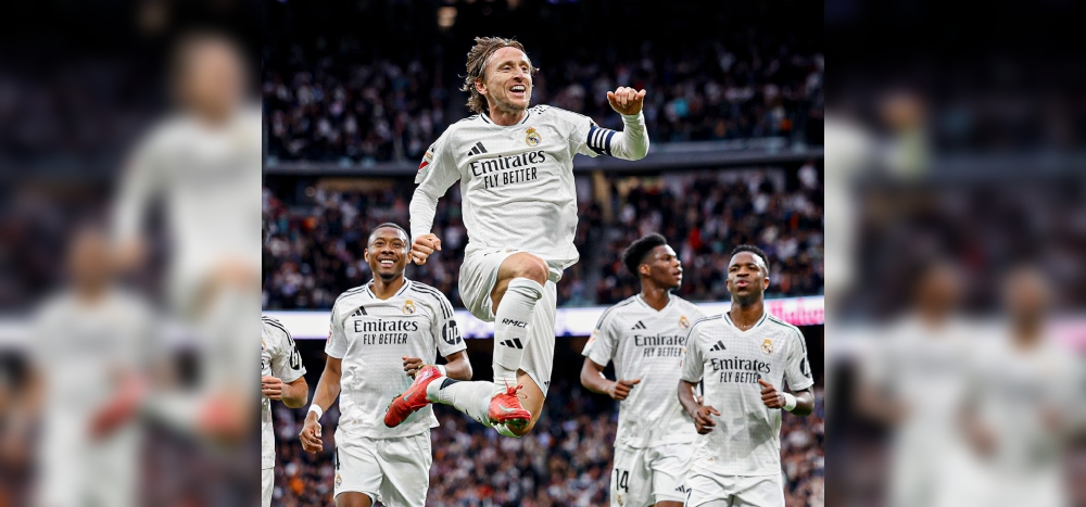 A pocos minutos del cierre de una primera mitad en la que ninguno de lo equipos conseguía abrir el marcador, el volante croata, ganador del balón de oro 2018, convirtió un golazo con un remate de volea desde fuera del área para adelantar a los blancos en el partido.
