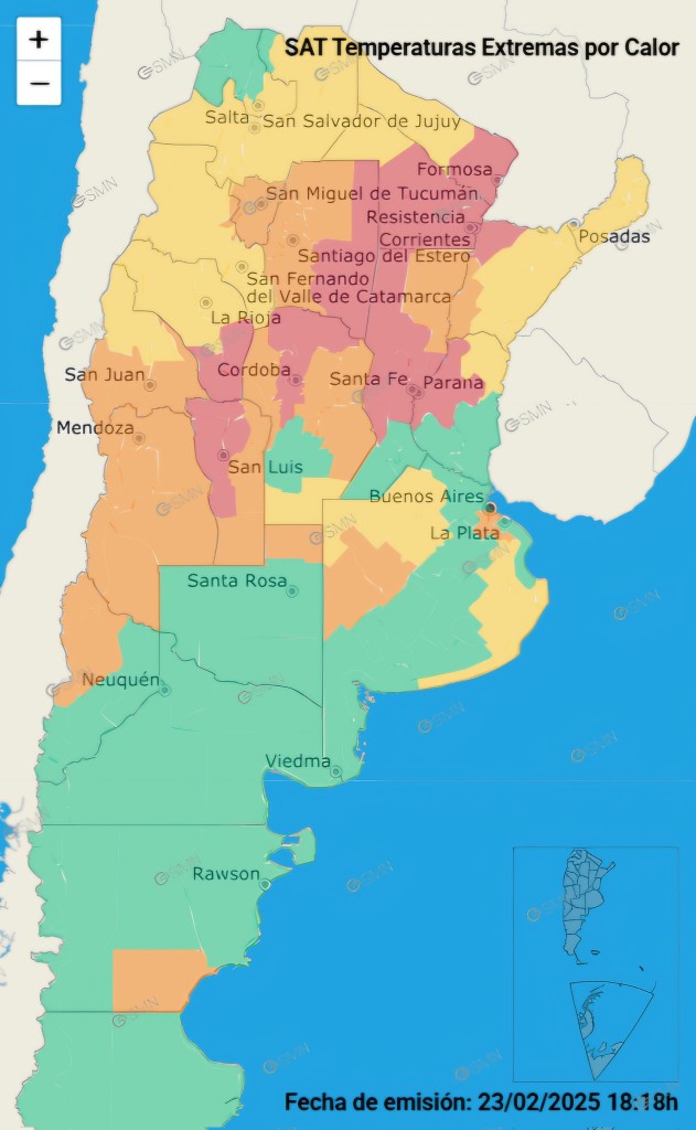 El Servicio Meteorológico Nacional (SMN) emitió una serie de alertas rojas, por calor extremo y amarillas, por tormentas, para este lunes 24 de febrero. Se trata de fenómenos considerados “muy peligrosos” y que “pueden afectar a todas las personas, incluso a las saludables”.