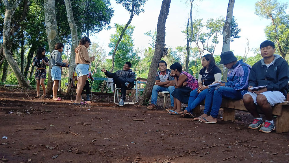 Reunidos en su asamblea tradicional, Aty Ñeychyrõ, Valentín Benítez, de la Comunidad Alecrín, San Pedro, expresó que “en la lengua está nuestra raíz, que no se ha perdido, se mantiene firmemente. En las comunidades (tekoa) hablamos en nuestra lengua, solo hablamos castellano cuando salimos de ahí adentro”.