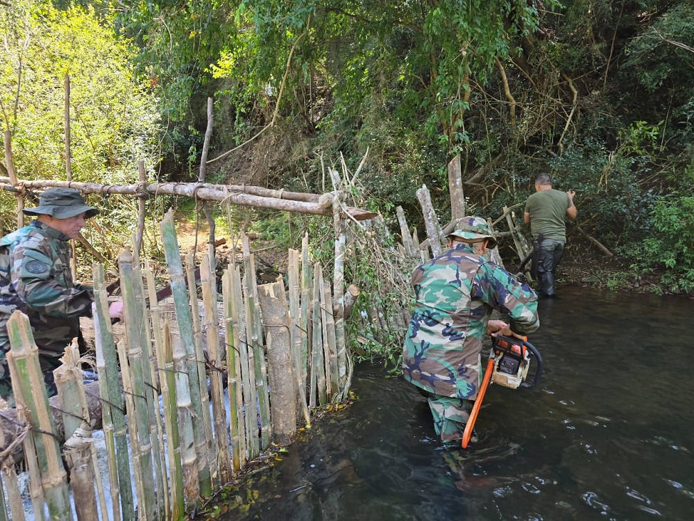 Este lunes personal de la Comisaría de Ruiz de Montoya, en conjunto con la División Montada UR-IV e integrantes del Cuerpo de Guardaparques y Operaciones de Selva del Ministerio de Ecología desarmaronun total de tres “trampas de París” ( una trampa que se monta como una presa, con un solo embudo de escape para los peces), artilugio totalmente ilegal instalado por pescadores en el cauce del arroyo Cuña Pirú.
