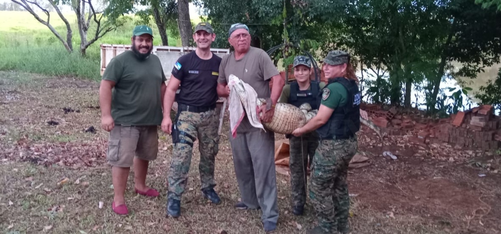 Esta tarde, personal de la Dirección de Defensa del Medio Ambiente y el herpentólogo Amado Martínez, referente de la Asociación Yarará en Acción rescataron a un yacaré que se encontraba en una laguna artificial de un domicilio ubicado en barrio Hipódromo General Manuel Belgrano de Posadas.