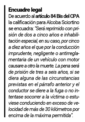 De acuerdo a la imputación, el miércoles 1 de mayo del año pasado a las 6.10 y al volante de un Renault Fluence con pedido de secuestro por robo, Alcoba Sciortino atropelló y mató a un motociclista identificado como Sergio Daniel Martínez de 34 años, a quienes sus conocidos le decían “Manteca”, residía en el barrio Yacyretá en la zona oeste de esta capital con su pareja y dos hijos pequeños.