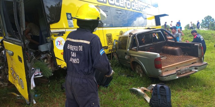 Pasadas las 13, a la altura del kilómetro 994 de la arteria, una camioneta Chevrolet S10 impactó frontalmente con un colectivo de larga distancia que volvía desde Florianópolis (Brasil) y circulaba en sentido contrario. Los dos vehículos terminaron fuera de la arteria.
