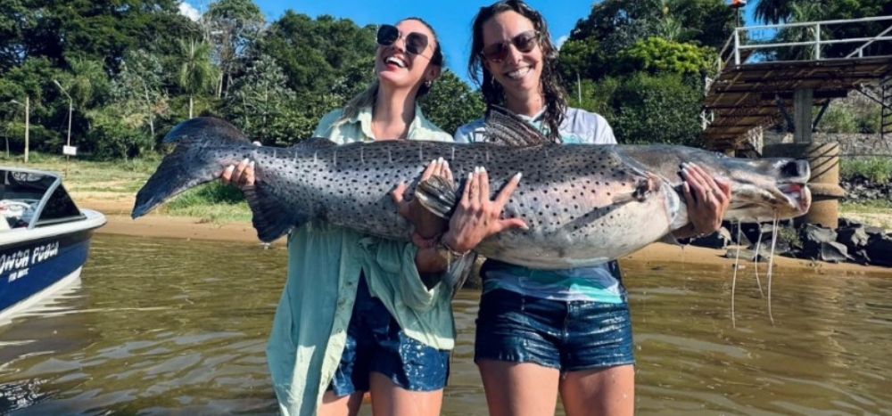 Las primas lucharon durante 40 minutos para poder sacar el surubí el ejemplar de surubí de gran tamaño a quien luego devolvieron al río.