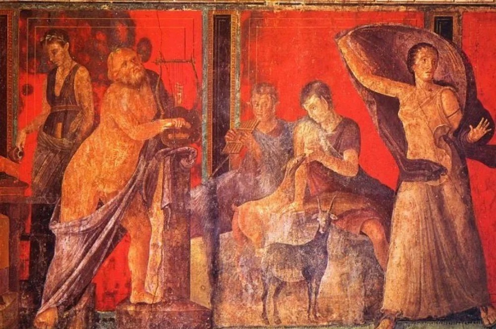 Los arqueólogos de Pompeya bautizaron esta nueva estancia como La Casa del Tíaso, es decir, la comitiva que se entregaba a los efectos del dios del vino en orgías y bacanales nocturnas.