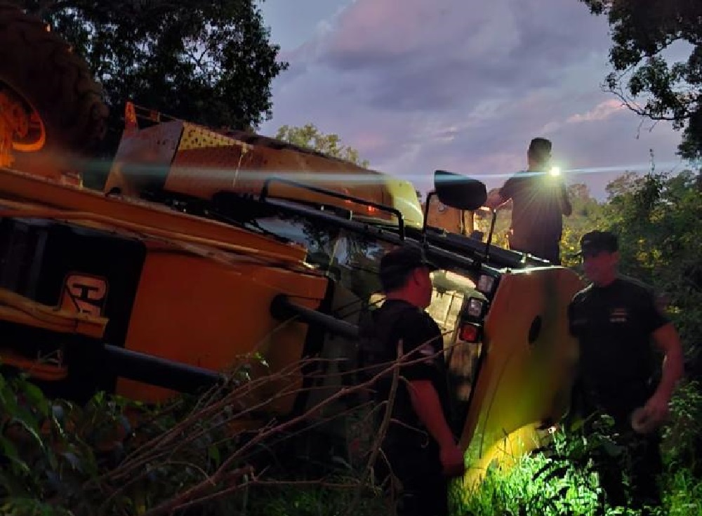 Por ello, se solicitó al Juzgado Federal de Eldorado la orden de allanamiento. Al ingresar al predio, la Policía localizó la retroexcavadora entre los árboles, pero volcada, la cual habría sido movida a esa posición para poder “esconderla”.