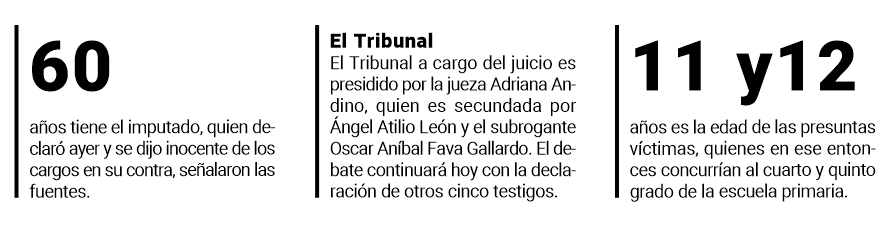El hombre, quien al parecer comenzó a dar clases en 2001 en el establecimiento educativo donde habrían ocurrido los hechos, entre otras cuestiones se declaró inocente y se desvinculó de las acusaciones, según confiaron las fuentes consultadas. Acto seguido, se dio inicio a la ronda de testimoniales, que comenzó con la declaración de dos progenitores (un hombre y una mujer) de dos de las supuestas víctimas, en tanto que la restante fue la madre de una menor que era compañera de las anteriores, y que habría afirmado ser testigo, señalaron las fuentes.