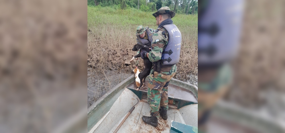 En la mañana de este jueves, dos perros fueron rescatados por efectivos de medio ambiente del departamento Lacustre de Puerto Iguazú. Se presume que los canes habían sido abandonados por cazadores furtivos en la Isla Palacio y se encontraban en buenas condiciones de salud.