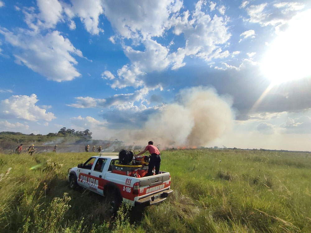 Por otro lado, apuntó que “también estuvimos enviando apoyo con personal y equipamiento a Paso Tirante, Corrientes, donde estuvieron colaborando también los bomberos voluntarios para sofocar el fuego de grandes dimensiones y que afecta a toda esa zona”.