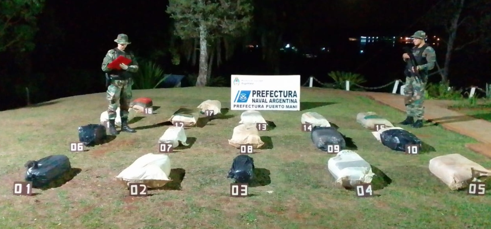 En Corpus, efectivos de Prefectura realizaban un patrullaje terreste el río Paraná y observaron a varias personas provenientes de la costa transportando bultos por un camino terrado.Al notar la presencia de Prefectura los sujetos abandonaron la carga y huyeron.