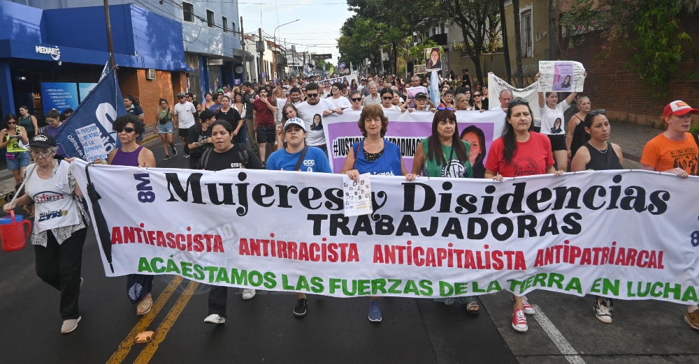 La movilización por el Día Internacional de la Mujer en Posadas fue masiva y contó con el acompañamiento de la familia de Soledad Machuca. Más de tres cuadras de mujeres comenzaron a marchar desde el Mástil y finalizaron en la plaza 9 de Julio, donde se llevó a cabo un breve acto y se leyó un manifiesto.