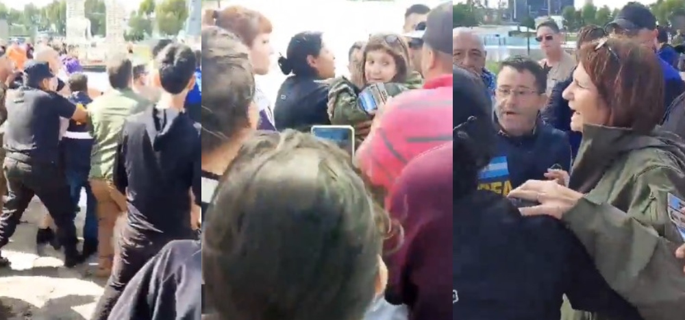 En las imágenes del incómodo momento, se observa como un grupo de vecinos echa entre gritos e insultos a Bullrich y Petri de la zona, quienes finalmente se retiraron a bordo de una camioneta.