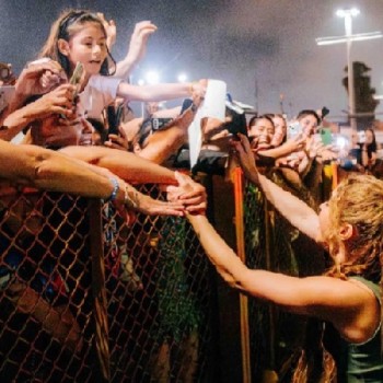 El inicio se marcó a las 21.20, cuando Shakira ingresó al escenario acompañada por sus bailarines y un grupo de cien fans locales seleccionados a través del campo VIP. Solo la separaba una valla de los presentes en ese sector, que aprovecharon para verla de cerca y registrar todo en miles de teléfonos celulares.
