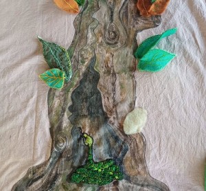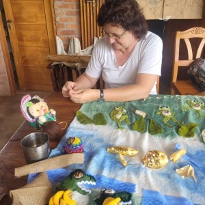María Elena Espinosa recuerda que “el grupo quedó, nos unimos mucho y queríamos seguir haciendo cosas. Así fue que en septiembre del 2024 surgió la idea de “¿y si narramos bordando algo acorde a nuestra provincia”, entonces fue Concepción -que vive en Corpus Christi-, quien propuso a Horacio Quiroga”. Ella es oriunda de Galicia, España, que vino a la Argentina en el 2020 y la pandemia la obligó a quedarse y se quedó.