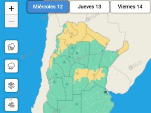 El Servicio Meteorológico Nacional (SMN) emitió un alerta amarilla por tormentas para Misiones, Formosa, parte de Chaco, Salta, Jujuy, San Juan La Rioja, Catamarca, Córdoba, Santa Fe y Entre Ríos.