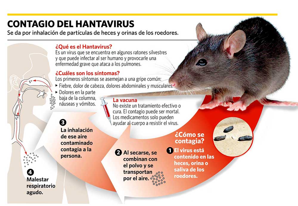 Otras posibles vías de transmisión son: contacto con excrementos o secreciones de ratones infectados con las mucosas conjuntival, nasal o bucal, o mordedura de roedor infectado.