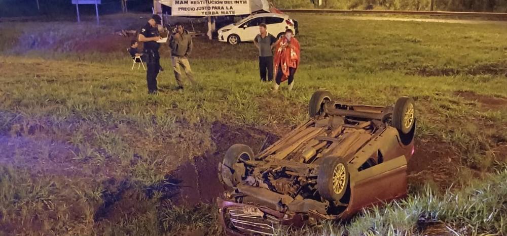 Cerca de las 23:30 horas del miércoles un automóvil Ford Eco Sport se despistó y volcó en la ruta nacional 14 y Picada Sarmiento, a la altura del kilómetro 868. Afortunadamente, los ocupantes del vehículo no sufrieron lesiones de gravedad.