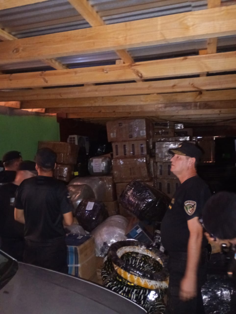 Durante el operativo, los uniformados hallaron 145 bultos de mercadería sin aval aduanero, que incluían 72 neumáticos de distintos tamaños, 49 cajas con aproximadamente 490 mil cigarrillos de la marca Eight, 11 aires acondicionados y 17 llantas de camiones.