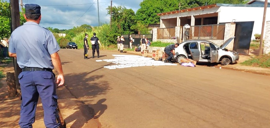 Cuando los prefecturianos los interceptaron, la respuesta a la voz de alto y sirenas fue acelerar por calles internas de Garupá en el intento por lograr escapar hacia el acceso sur de Posadas o hacia las autovías de la ex ruta nacional 12. Como apoyo, la patrulla de la Prefectura solicitó a la comisaría Quinta de la Unidad Regional X inmediata colaboración. Los policías finalmente alcanzaron a los individuos en fuga en la calle Santo Pipó, cerca del cruce con Campo Grande.