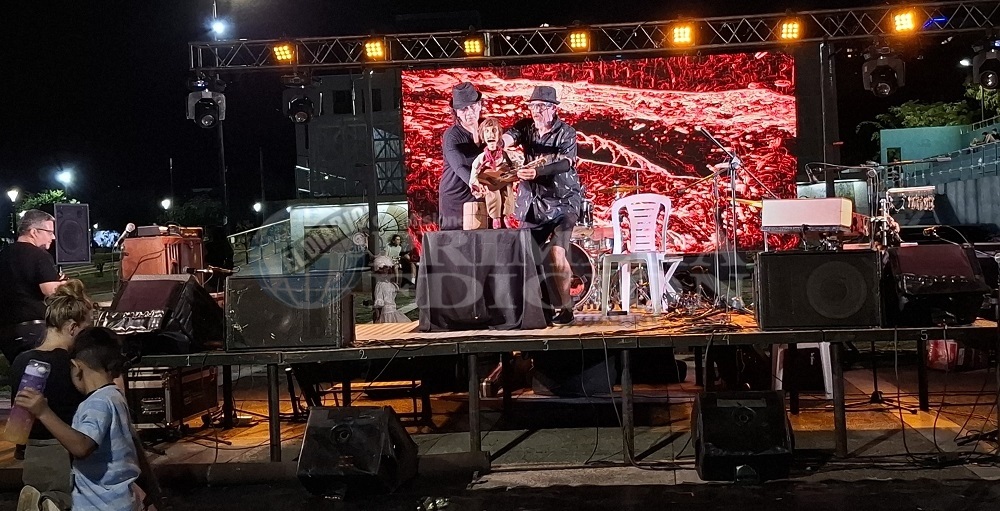 Kossa Nostra y su grupo deleitaron a grandes y chicos con sus títeres, en especial uno de Ramón Ayala que cantó y bailó para el deleite del público presente.