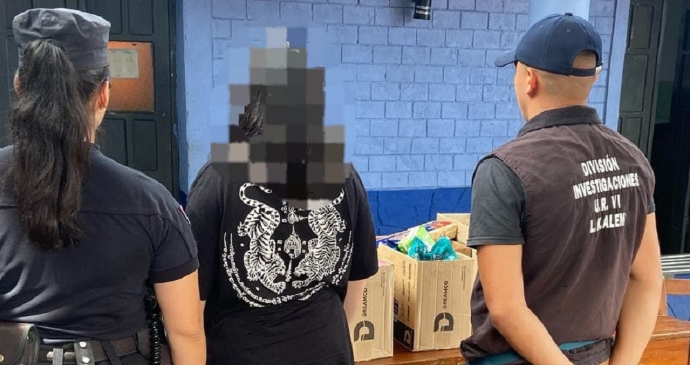 Tras las averiguaciones realizadas en conjunto entre la Comisaría y el personal de la División Investigaciones de la Unidad Regional VI, se procedió a la demora de la acusada en cercanías a su vivienda y le incautaron seis cajas de mercaderías diversas y la tarjeta de débito de la damnificada.
