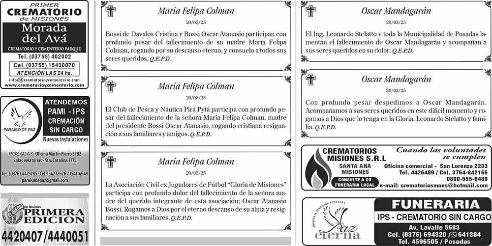 Tags: Fúnebres 22-03-2025