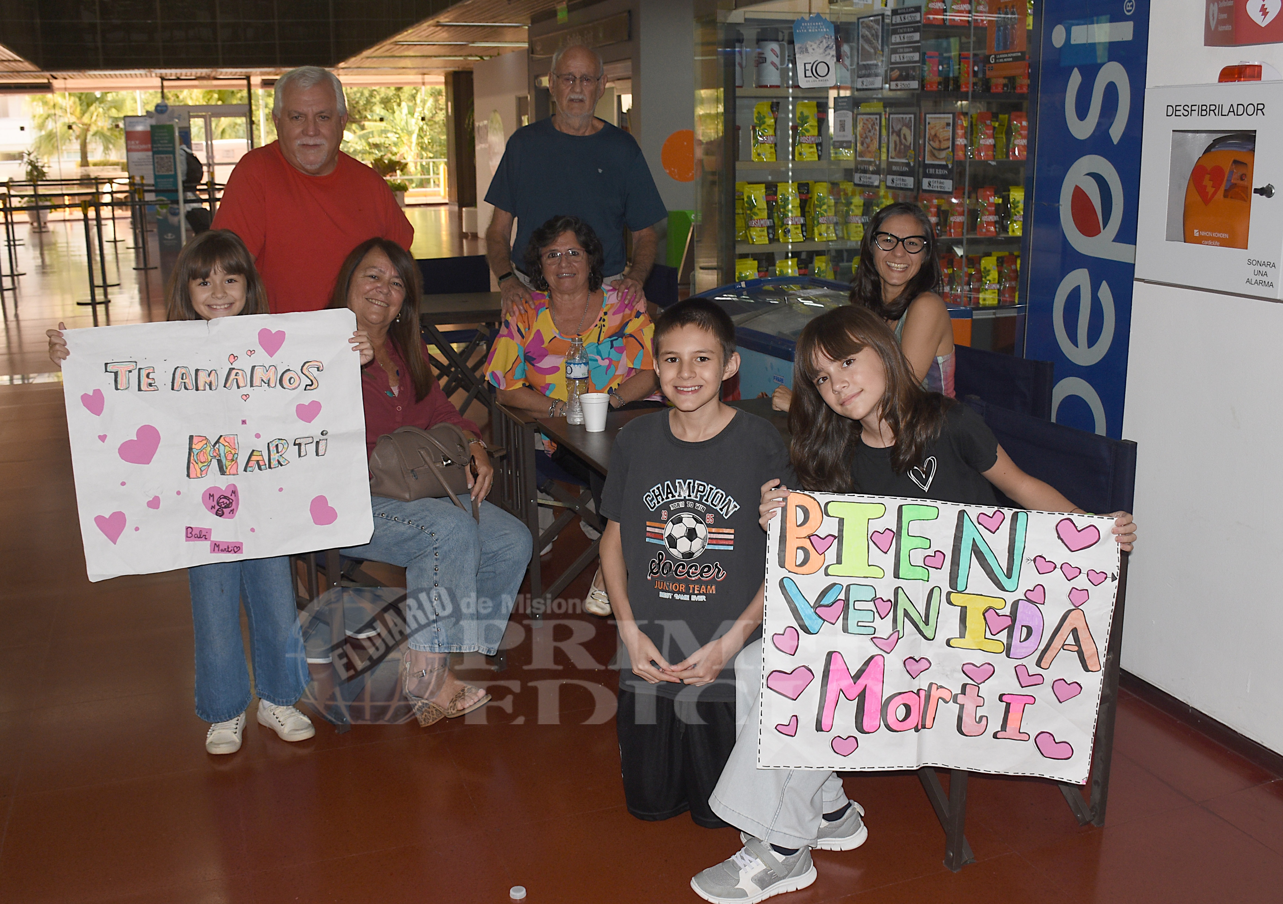 Esta tarde volvió a Misiones luego de un tratamiento que curó su enfermedad y grande fue el recibimiento que tuvo por parte de su familia.