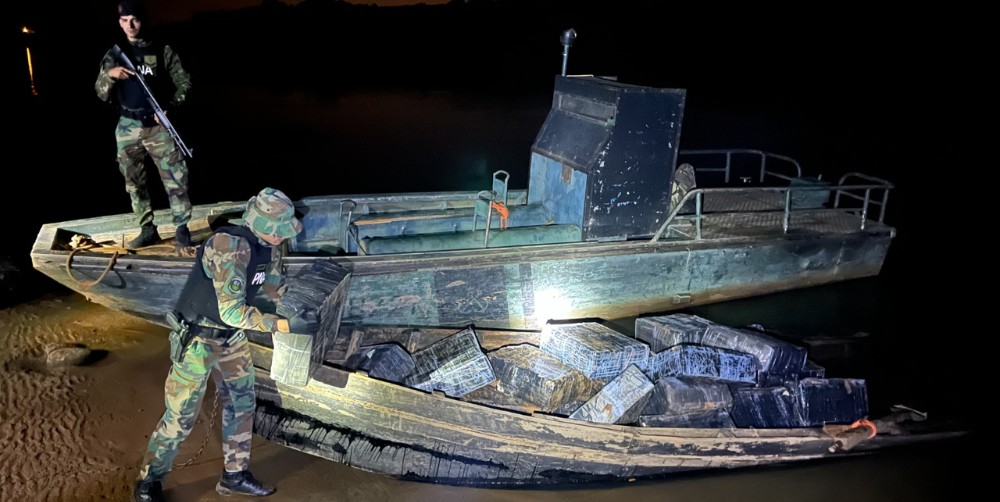 El hecho ocurrió durante las tareas de patrullaje y control de la frontera fluvial, cuando los efectivos de la Prefectura detectaron la presencia de dos embarcaciones cruzando el río Paraná desde Paraguay con una carga sospechosa. Ante la presencia de los uniformados, una de las embarcaciones emprendió la huida, dejando atrás la carga en la costa argentina.
