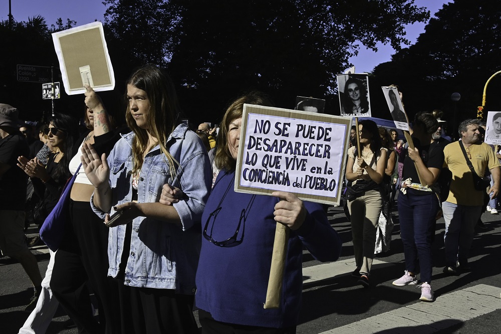 En tanto, las organizaciones convocantes señalaron en un documento conjunto que “en el camino de los y las 30.000 seguimos levantando sus banderas de lucha contra la injusticia y la desigualdad y le decimos a (Javier) Milei y a (Victoria) Villarruel: el pueblo unido jamás será vencido”.