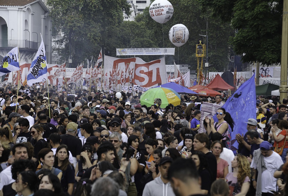 En el texto leído se reclamó además contra la mayoría de las iniciativas que implementó el gobierno libertario en casi un año y medio de gestión, por lo que pidieron “derogación del DNU 70/23, la corrupta Ley Bases, las facultades delegadas y el RIGI”, entre otros puntos.