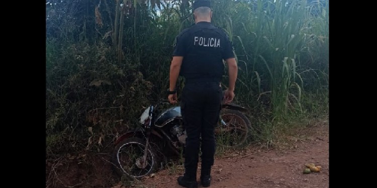 Este lunes, sobre una calle terrada de Picada Molino, en cercanías de San Vicente, se produjo el despiste de una motocicleta con cuatro ocupantes a bordo.