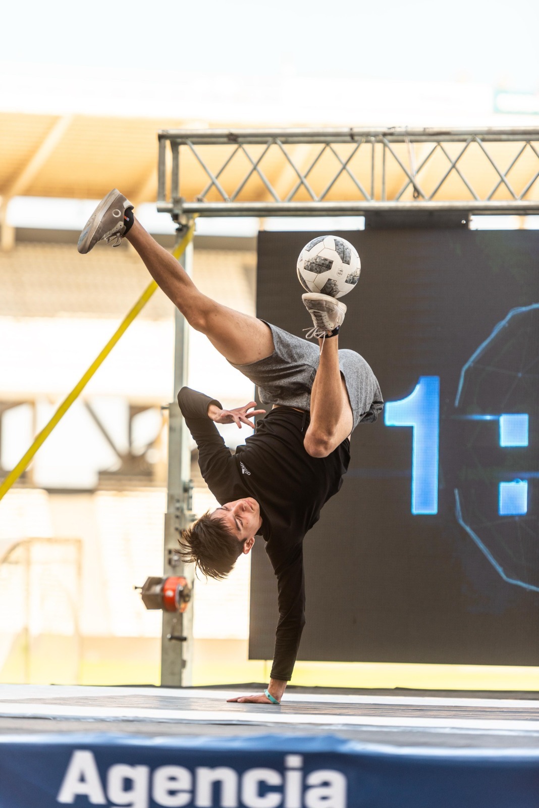 Bien, se hacen grupos de cuatro competidores y es todos contra todos. El formato es de batalla eliminatoria, entonces tenés 30 segundos para demostrar tus mejores trucos y después le toca a los otros. Son tres rondas así, así que tenés, en total, un minuto y medio. El año pasado, enfrenté a un chico de Francia, otro de Vietnam y el tercero era de Polonia. La segunda fase de grupos es similar. Y ahí tenés cinco jueces que evalúan la dificultad de los trucos, en base a la técnica; la originalidad, respecto a la innovación; y el control, es decir, que no se te caiga la pelota.
