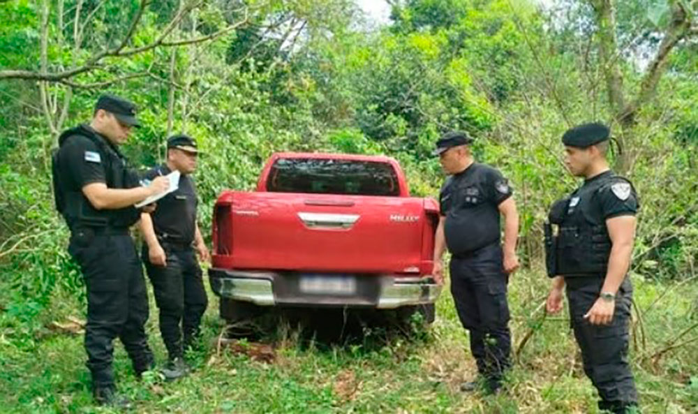 El vehículo sustraído fue una Toyota Hilux color bordó, la cual fue hallada dos días después en una chacra de Paraje Telina, a unos 50 metros de la ruta nacional 101.