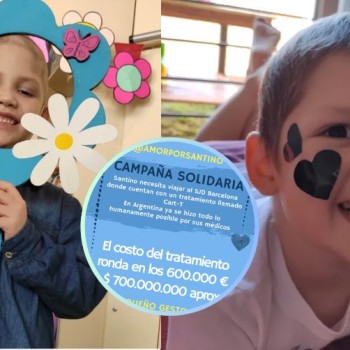 Santino, diagnosticado con Leucemia Linfoblástica Aguda Tipo B de Alto Riesgo a los tres años, ha atravesado diversos tratamientos y un trasplante de médula. Sin embargo, su recuperación fue parcial y los médicos recomendaron la continuidad de su tratamiento en España. Para costear el viaje y el proceso médico, su familia necesita recaudar 500 millones de pesos.
